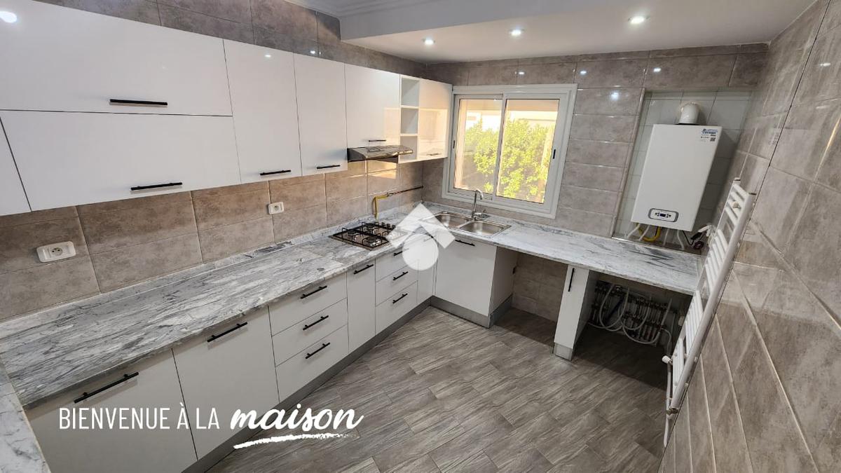 Cet étage de villa en S+3 occupe le premier niveau d’une villa implantée dans un quartier résidentiel.